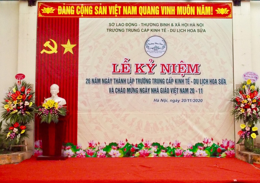 Sáng 20/11/2020 Trường Trung cấp Kinh tế – Du lịch Hoa Sữa đã long trọng tổ chức Lễ kỉ niệm 26 năm ngày thành lập Trường và 38 năm ngày Nhà giáo Việt Nam 20/11. Thầy trò Hoa Sữa đã được đón tiếp lãnh đạo UBND Phường, lãnh đạo Công an Phường Lĩnh Nam, các đối tác trong và ngoài nước, các bác sáng lập viên, các cựu giáo chức, cựu học sinh …cùng về dự lễ.