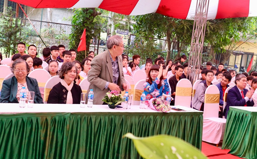Buổi lễ được mở đầu bằng chương trình văn nghệ đặc sắc của các em học sinh, tiết mục nào cũng ấn tượng, đáng xem đặc biệt là tiết mục múa dễ thương của các em học sinh khiếm thính, tuy không nghe dược nhạc nhưng động tác của các em rất dều và đẹp khiến người xem không rời mắt được. Trong diễn văn do cô Lê Thị Kim Phượng – Phó hiệu trưởng, đọc tại buổi lễ đã nhấn mạnh: năm 2020 là năm vô cùng khó khăn đối với thầy trò Hoa Sữa do ảnh hưởng nghiêm trọng của đại dịch Covid 19, nhưng bằng tinh thần đoàn kết, bằng sự cảm thông – chia sẻ của tập thể cán bộ giáo viên, nhân viên Nhà trường đang từng bước vượt qua khó khăn… Cô Phượng cũng gửi lời cảm ơn sâu sắc tới Phường Lĩnh Nam, các đối tác, các thế hệ nhà giáo đã và đang cống hiến cho sự nghiệp dạy nghề tại Trường Hoa Sữa và mong muốn tiếp tục nhận được được sự ủng hộ, hợp tác của mọi người.