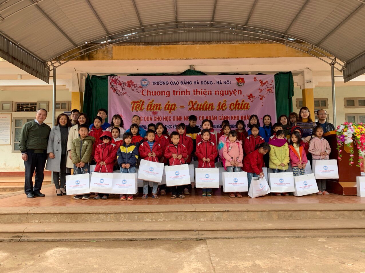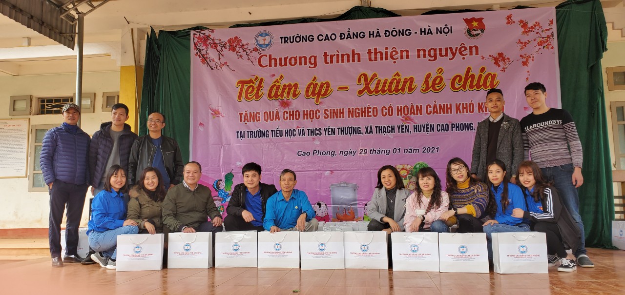 Đây là chuyến đi thiện nguyện “Xuân ám áp- tết sẻ chia” Tân Sửu 2021 của Công đoàn và Đoàn thanh niên nhà trường tổ chức do thạc sỹ Nguyễn Thị Tú Minh, Phó Chủ tịch Công đoàn nhà trường làm trưởng đoàn đến Trường tiểu học và THCS Yên Thượng thăm hỏi trao suất quà cho 217 em học sinh và giáo viên có hoàn cảnh khó khăn cùng 05 bộ bàn ghế đá với tổng số tiền là 30.000.000 đồng. Số quà của thầy và trò Trường Cao đẳng Y tế Hà Đông trao tặng các em học sinh và giáo viên có hoàn cảnh khó khăn mỗi 1 phần quà trị giá 100 000 đồng. Đây là số quà tuy không nhiều nhưng góp thêm phần đem lại những ngày tết đầm ấm hơn cho các em học sinh và giáo viên nhân dịp Tết đến, Xuân về.