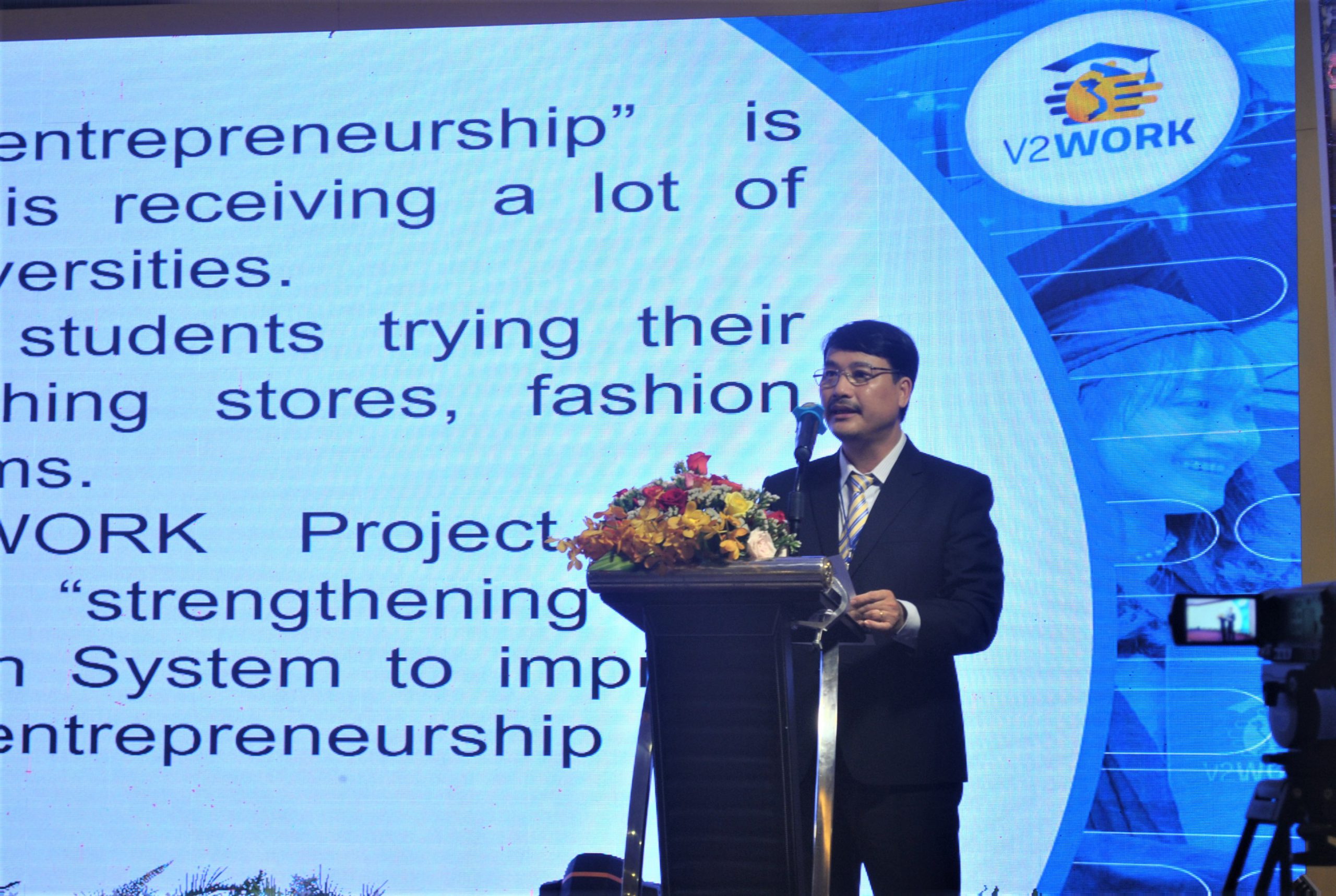 Dự án “Tăng cường hệ thống giáo dục Việt Nam nhằm hỗ trợ khả năng tìm kiếm việc làm và kỹ năng khởi nghiệp của sinh viên tốt nghiệp” (V2WORK) là một dự án nằm trong khuôn khổ Chương trình Eramus+ tài trợ bởi Ủy ban Châu Âu. Dự án bao gồm các thành viên từ phía Châu Âu: ĐH Alicante (Tây Ban Nha) – Điều phối; ĐH Coimbra (Bồ Đào Nha), ĐH FH Joanneum (Áo). Về phía Việt Nam có sự tham gia của Bộ Giáo dục và Đào tạo, Phòng Thương mại và Công nghiệp Việt Nam, Công ty TNHH Xã hội AIESEC Việt Nam, và 8 trường ĐH Việt Nam, gồm: Trường ĐH Bách Khoa Hà Nội; trường ĐH Công nghiệp Vinh; ĐH Đà Nẵng; trường ĐH Nha Trang; trường ĐH Tây Nguyên; trường ĐH Khoa học, Xã hội & Nhân văn – ĐHQG TP HCM; trường ĐH Thủ Dầu Một; trường ĐH Trà Vinh. |