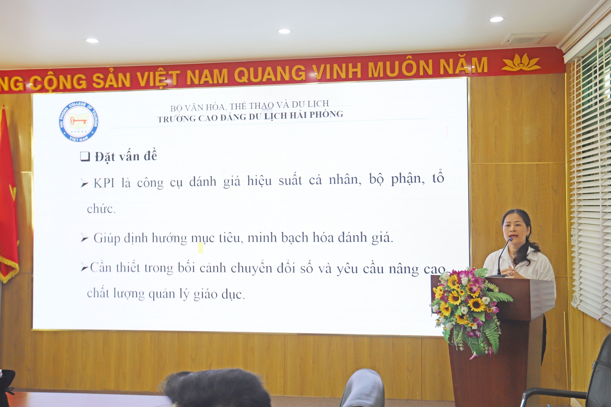 Sáng ngày 14/6/2025, Trường Cao đẳng Du lịch Hải Phòng đã tổ chức thành công Hội thảo khoa học với chủ đề “Xây dựng chỉ số đo lường hiệu quả công việc (KPI- Key Performance Indicators)”. Đây là hoạt động chuyên môn có ý nghĩa quan trọng nhằm nâng cao nhận thức, tổng quát phương pháp tiếp cận triển khai KPI trong hệ thống quản lý tại Nhà trường.