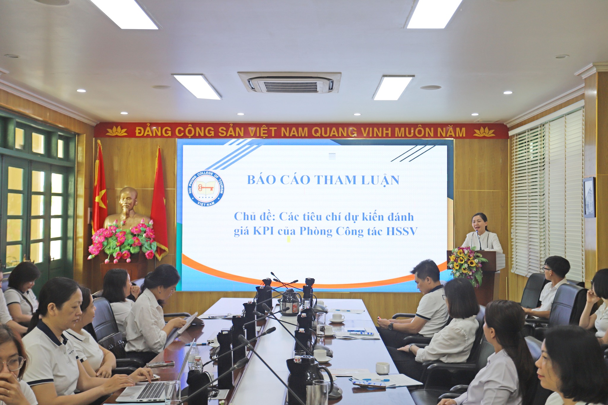 – Các báo cáo tham luận từ các phòng chức năng với chủ đề: Các tiêu chí dự kiến đánh giá KPI của Phòng Đào tạo, Quản lý khoa học và Hợp tác quốc tế; phòng Công tác HSSV; Phòng Hành chính tổng hợp.