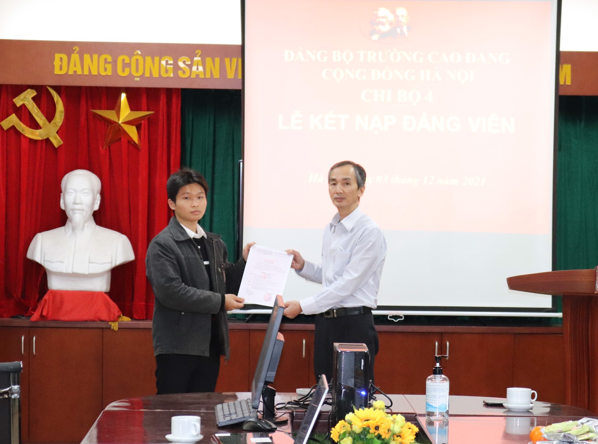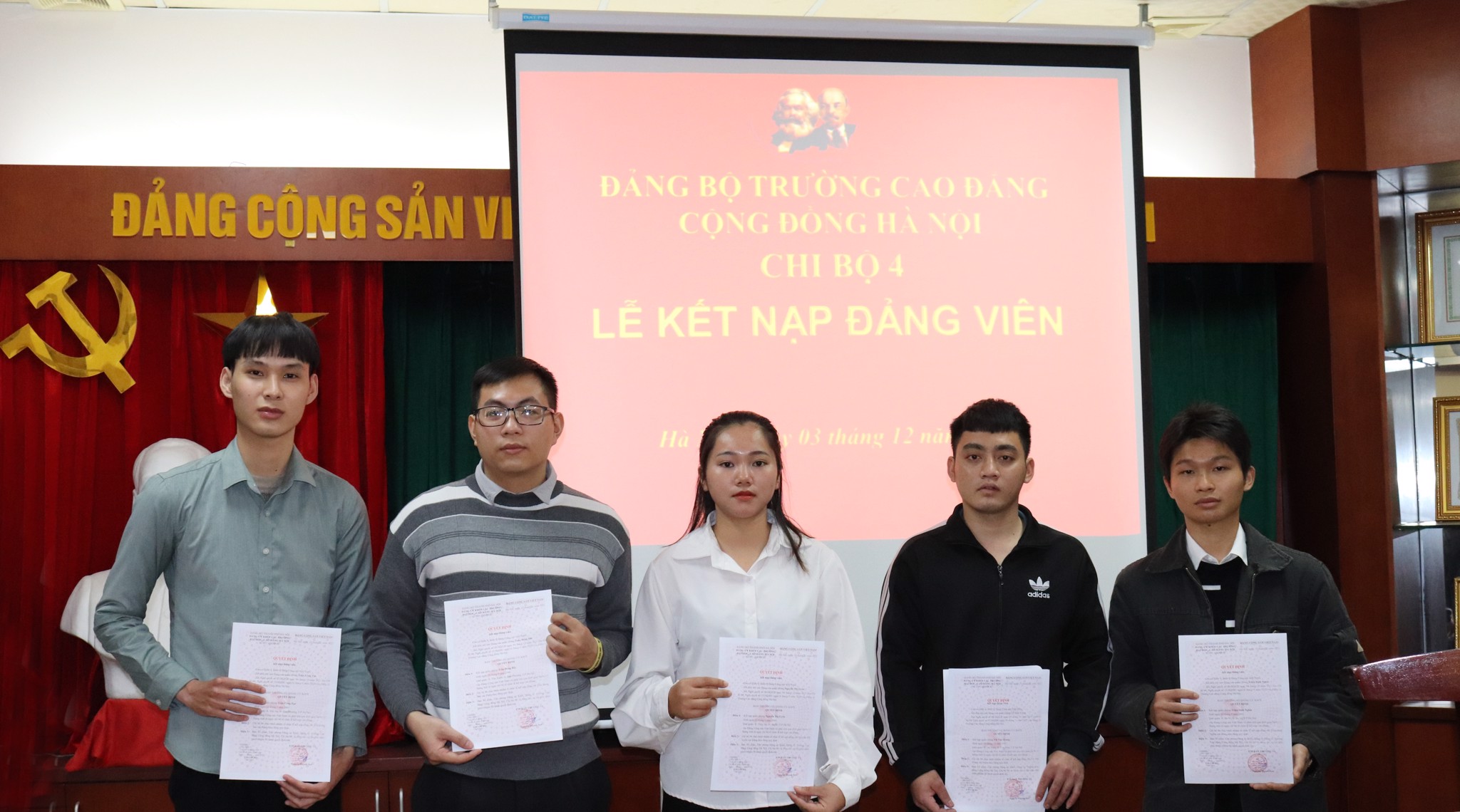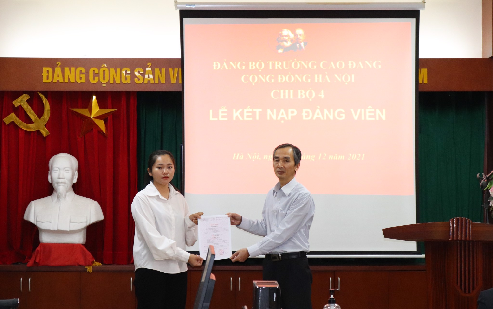 Ngày 3/11/2021, được sự đồng ý của Đảng ủy trường Cao đẳng Cộng đồng Hà Nội, Chi bộ 4 đã long trọng tổ chức lễ kết nạp 05 sinh viên ưu tú vào hàng ngũ Đảng Cộng sản Việt Nam.