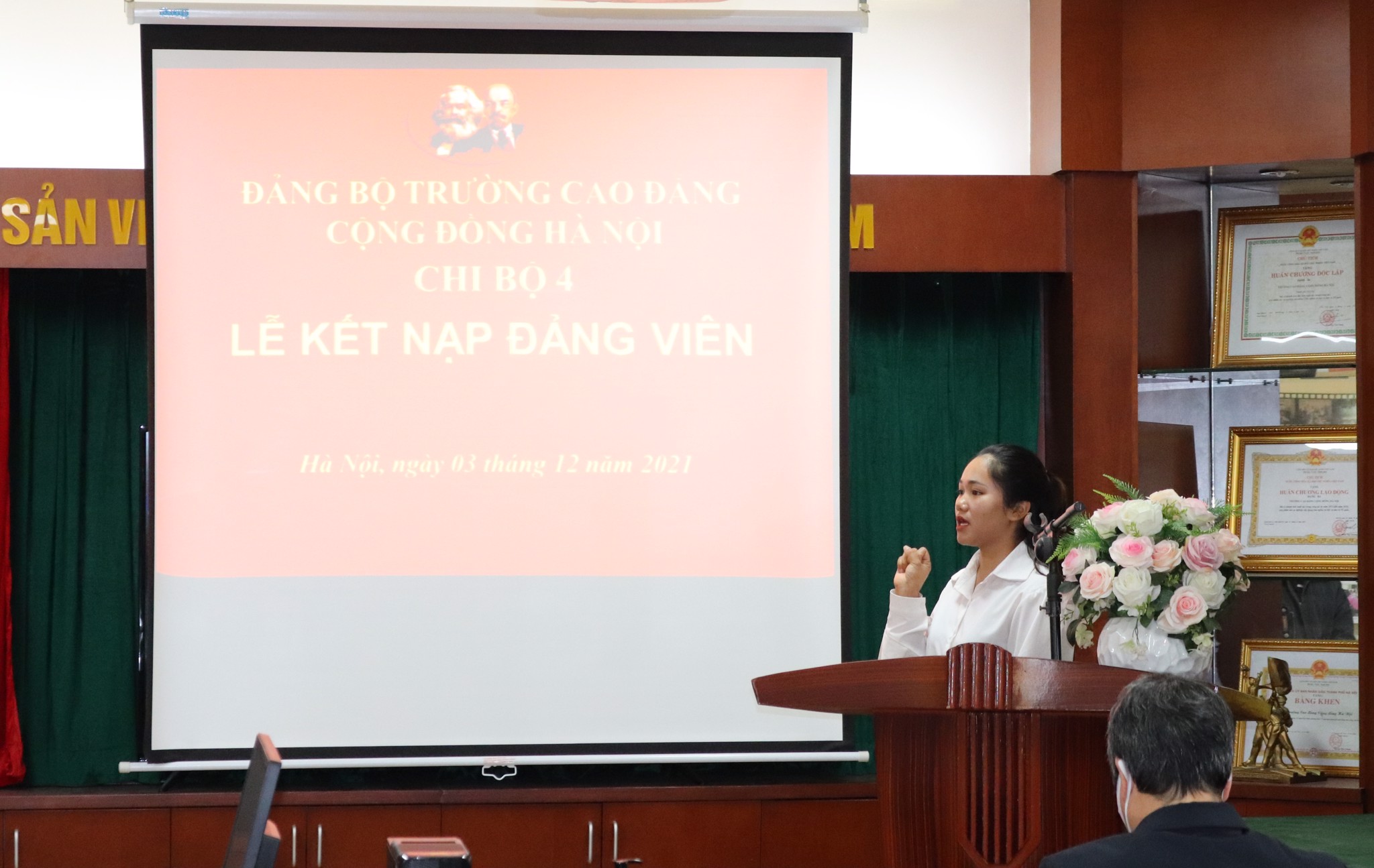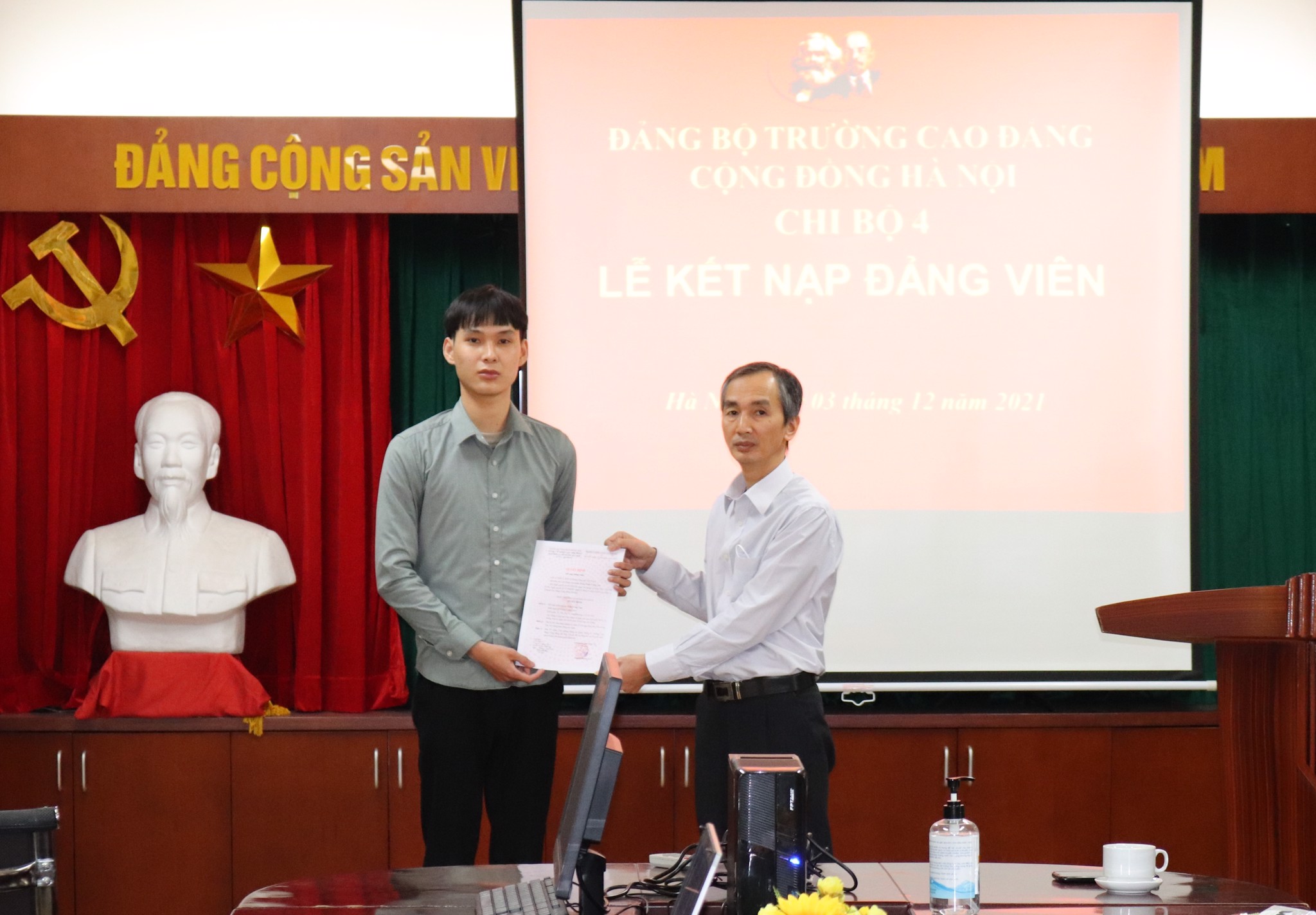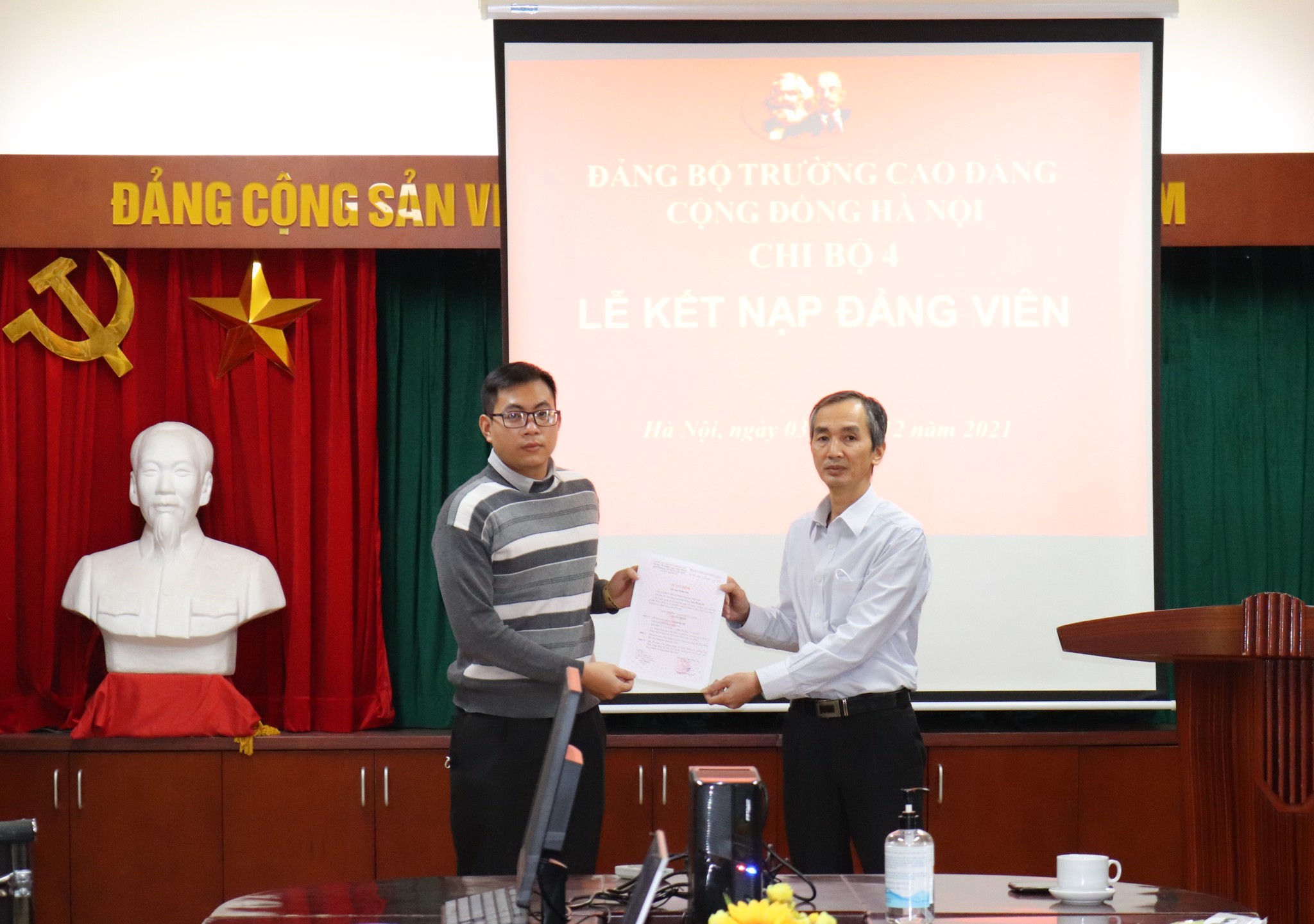 Ngày 3/11/2021, được sự đồng ý của Đảng ủy trường Cao đẳng Cộng đồng Hà Nội, Chi bộ 4 đã long trọng tổ chức lễ kết nạp 05 sinh viên ưu tú vào hàng ngũ Đảng Cộng sản Việt Nam.