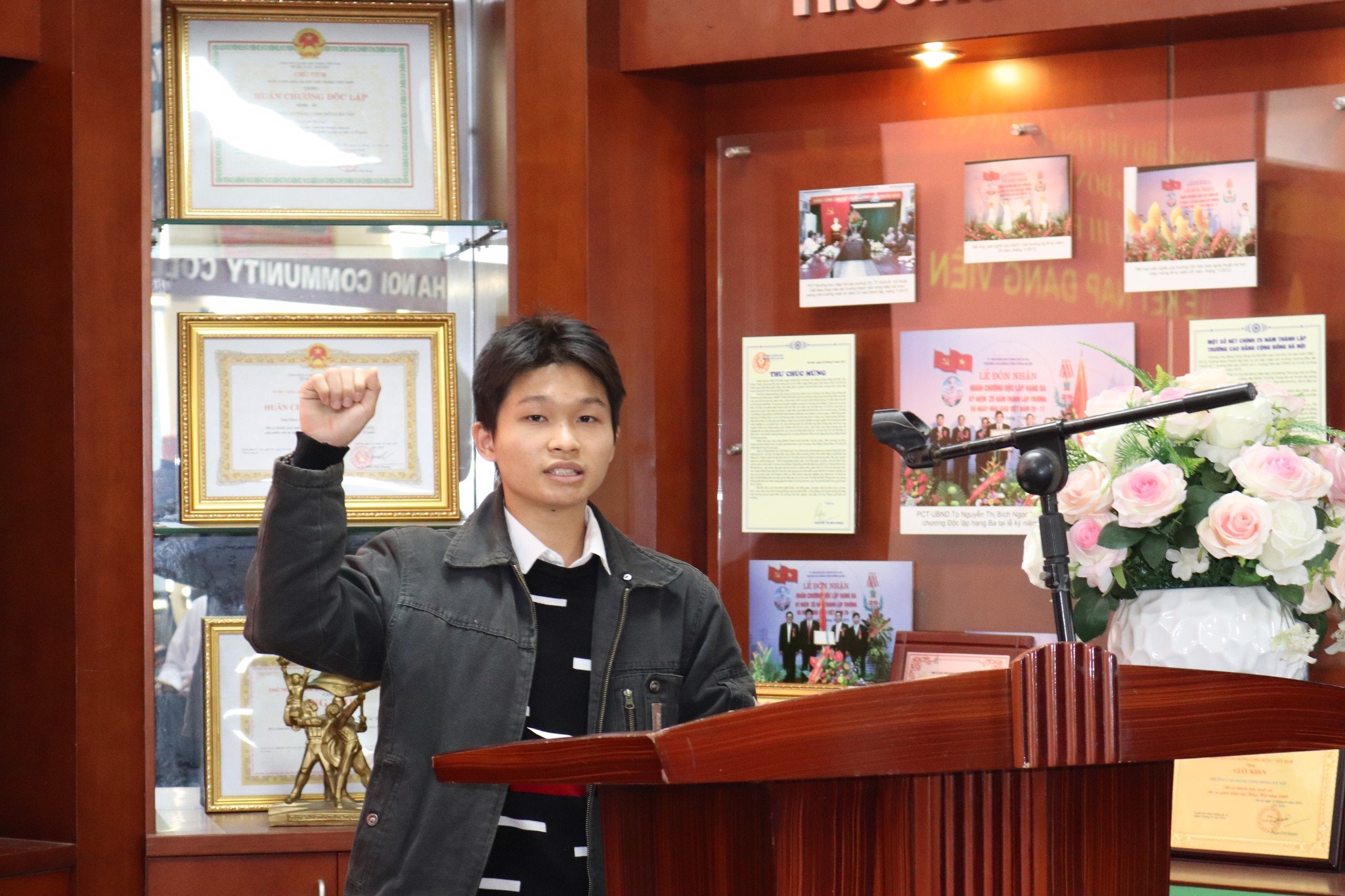 Phát biểu tại buổi lễ, đồng chí Nguyễn Tuấn Anh – Phó Bí thư Đảng ủy nhà trường chúc mừng và bày tỏ sự tin tưởng vào thế hệ trẻ là những sinh viên ưu tú của trường, đặc biệt năm đảng viên mới là những gương mặt tiêu biểu, đại diện của sinh viên HCC. Đồng chí Phó Bí thư cũng bày tỏ mong muốn các đảng viên mới sẽ tiếp tục phát huy vai trò, trách nhiệm của người đảng viên sinh viên, không ngừng học tập, phấn đấu và thực hiện tốt nhiệm vụ để góp phần xây dựng Đảng bộ nhà trường ngày càng vững mạnh.