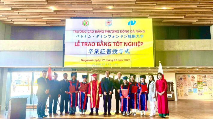 Lễ trao bằng tốt nghiệp lần đầu tiên được tổ chức tại tỉnh Nagasaki – Nhật Bản đã thành công tốt đẹp, đánh dấu một cột mốc quan trọng trong hành trình hợp tác giữa Trường Cao đẳng Phương Đông Đà Nẵng – Việt Nam và Sở Phúc lợi & Chăm sóc sức khỏe của tỉnh Nagasaki – Nhật Bản trong lĩnh vực điều dưỡng.