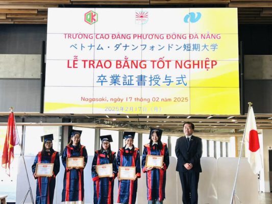 Trường Cao đẳng Phương Đông Đà Nẵng đã phối hợp với Sở Phúc lợi & Chăm sóc sức khỏe của tỉnh Nagasaki tổ chức Lễ Trao bằng tốt nghiệp cho sinh viên