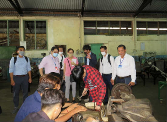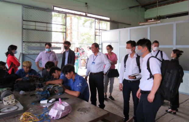 Kết thúc buổi làm việc, quý đoàn cùng đại diện nhà trường đã đi tham quan các xưởng thực hành như cơ khí, điện – điện tử, ô tô.