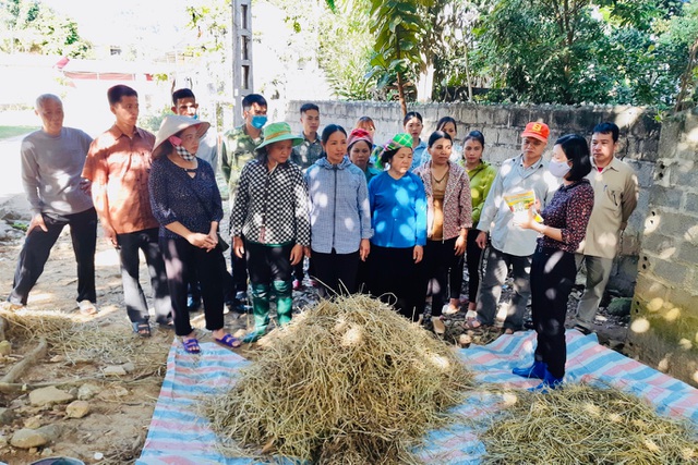 Cô Lan Anh đang giới thiệu với bà con về giống lúa mới