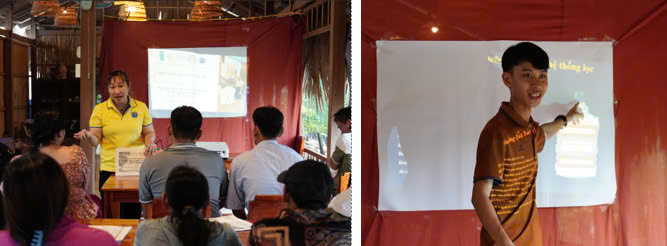 Từ tháng 09/2024 đến tháng 11/2024, đội ngũ kỹ thuật của chương trình hỗ trợ cộng đồng đến từ Trường Đại Học Trà Vinh đã tổ chức chương trình tập huấn về các phương pháp trữ nước hiệu quả cho cộng đồng vào mùa mưa; các phương pháp trữ lắng nước mặt/ nước máy trước khi đưa lên hệ thống bồn trữ nước; cũng như công tác tập huấn các hộ dân về việc sử dụng bồn nước và hệ thống lọc/ xử lý nước ngọt dành cho sinh hoạt đang được tài trợ từ chương trình. Chương trình cũng nâng cao kiến thức của cộng đồng về nước sạch và sức khỏe cộng đồng; các phương pháp sử dụng nước tiết kiệm và hiệu quả.
