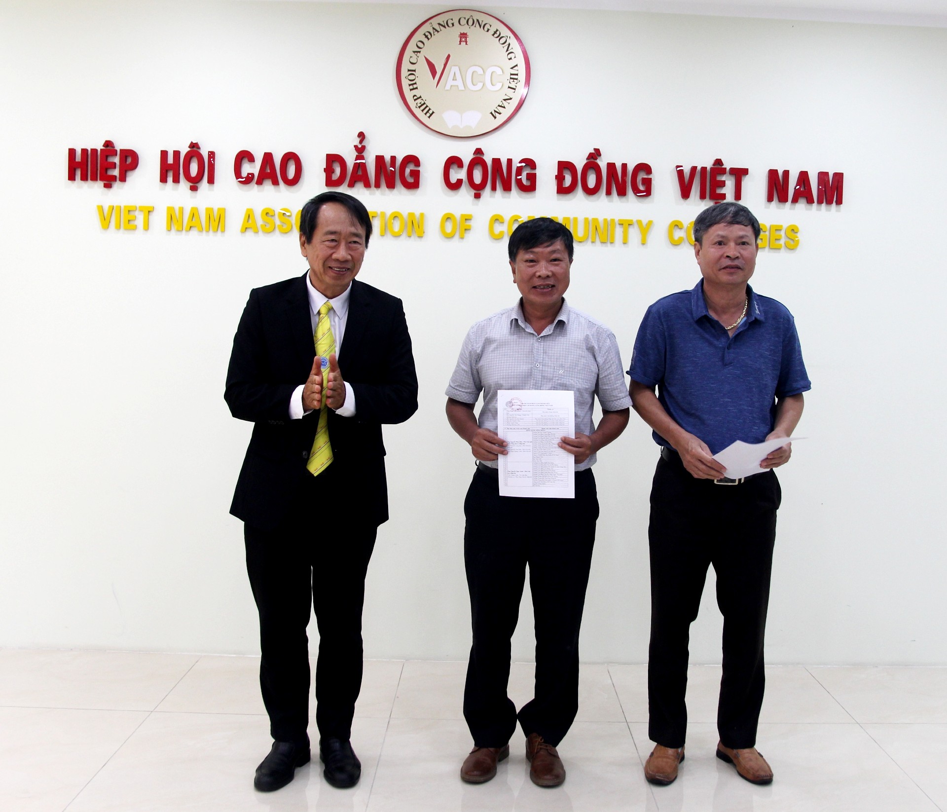 Chương trình làm việc có sự tham gia của PGS.TS Phạm Tiết Khánh – Chủ tịch Hiệp hội, Thầy Phan Mạnh Tiến – Phó Chủ tịch Hiệp hội, Thầy Nguyễn Phúc Đức – Phó Chủ tịch kiêm Tổng thư ký Hiệp hội, Thầy Nguyễn Công Đại – Phó Chủ tịch Hiệp hội, Thầy Hoàng Văn Huế – Phó Hiệu trưởng Phụ trách Điều hành Trường CĐCĐ Hà Tây, Cô Nguyễn Thị Thu Hà – Ủy viên BTV Hiệp hội, Giám đốc TT Kiểm định CATD cùng các cán bộ Văn phòng Hiệp hội Cao đẳng Cộng đồng Việt Nam.