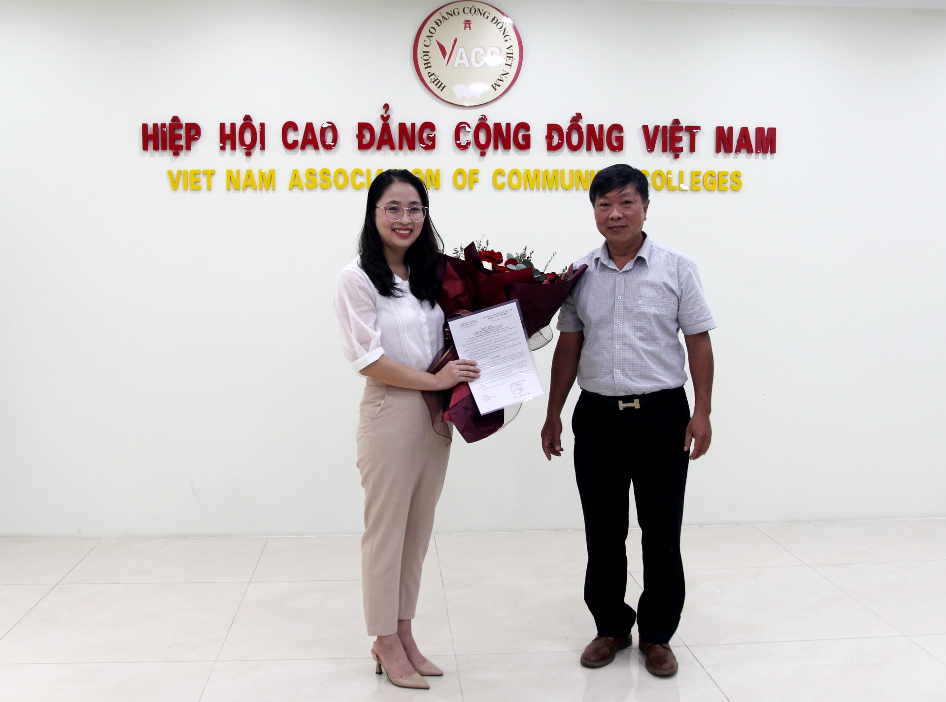 Tại buổi làm việc, Thầy Nguyễn Phúc Đức – Phó Chủ tịch kiêm tổng thư ký Hiệp hội cũng đã trao quyết định phân công Bà Nguyễn Huyền Châu giữ chức vụ Phó Chánh Văn phòng Hiệp hội. Bà Nguyễn Huyền Châu sẽ thực hiện nhiệm vụ thường trực tại Văn phòng Hiệp hội và thực hiện các nhiệm vụ được phân công theo quy định.