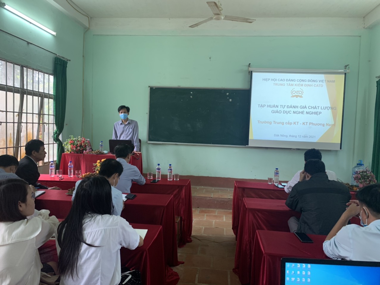 Từ ngày 09/12 – 10/12/2021, Trung tâm Kiểm định CATD (Trung tâm) tiến hành đợt Tập huấn hướng dẫn cán bộ, nhà giáo trong công tác tự đánh giá chất lượng cơ sở giáo dục nghề nghiệp tại trường Trung cấp KT – KT Phương Nam (Đăk Nông).