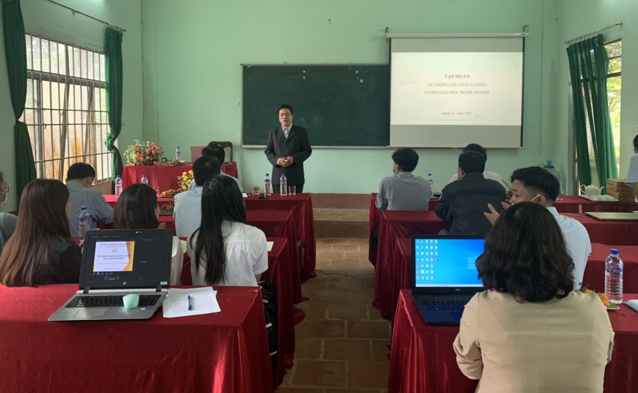Trong 02 ngày tập huấn, Phó Giám đốc Đinh Công Bắc – phụ trách công tác kiểm định của Trung tâm đã tập huấn về công tác tự đánh giá chất lượng giáo dục nghề nghiệp hướng đến công tác đánh giá ngoài cơ sở giáo dục nghề nghiệp và đánh giá ngoài chương trình đào tạo cho toàn thể cán bộ, nhà giáo của nhà trường.