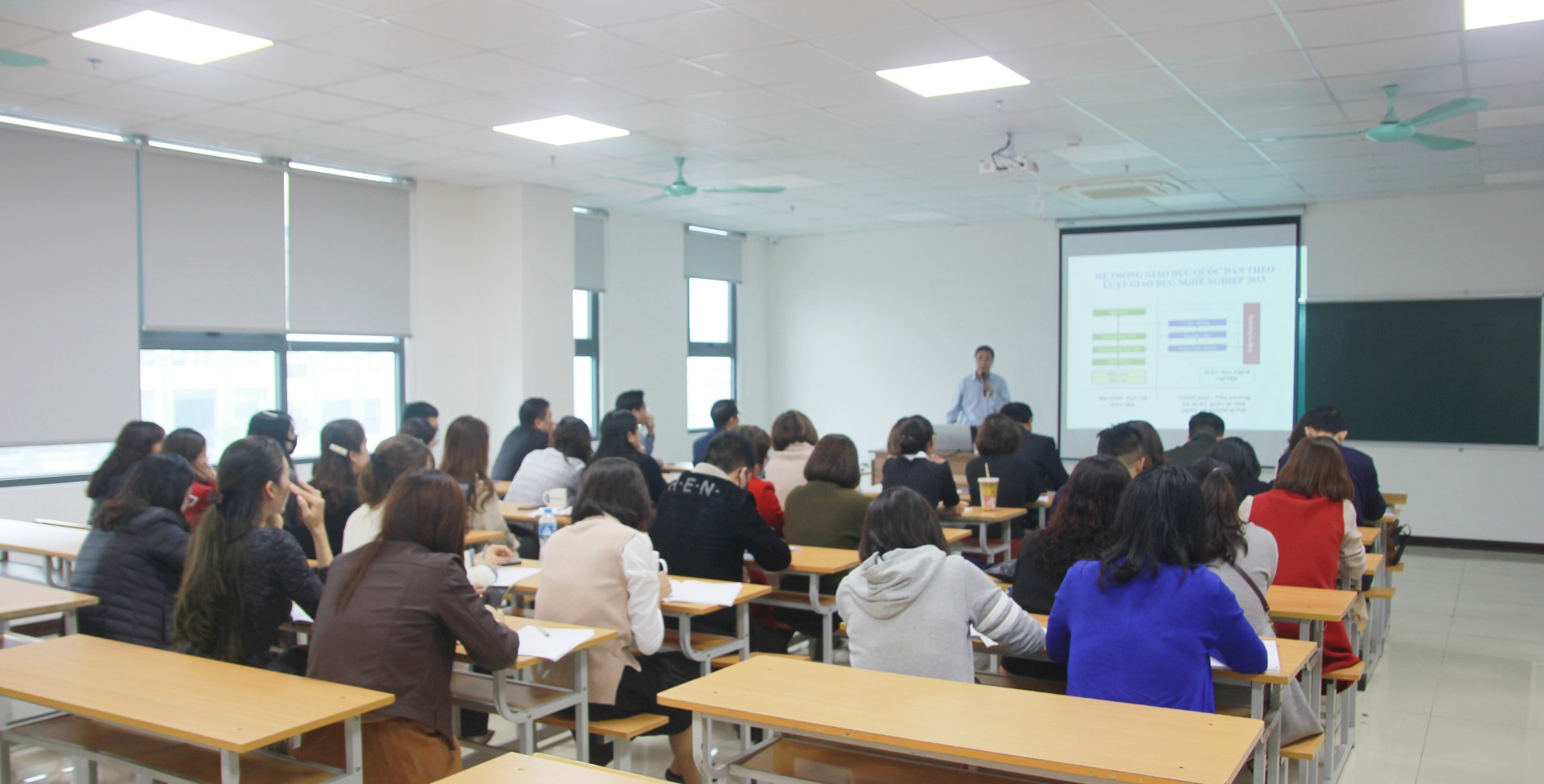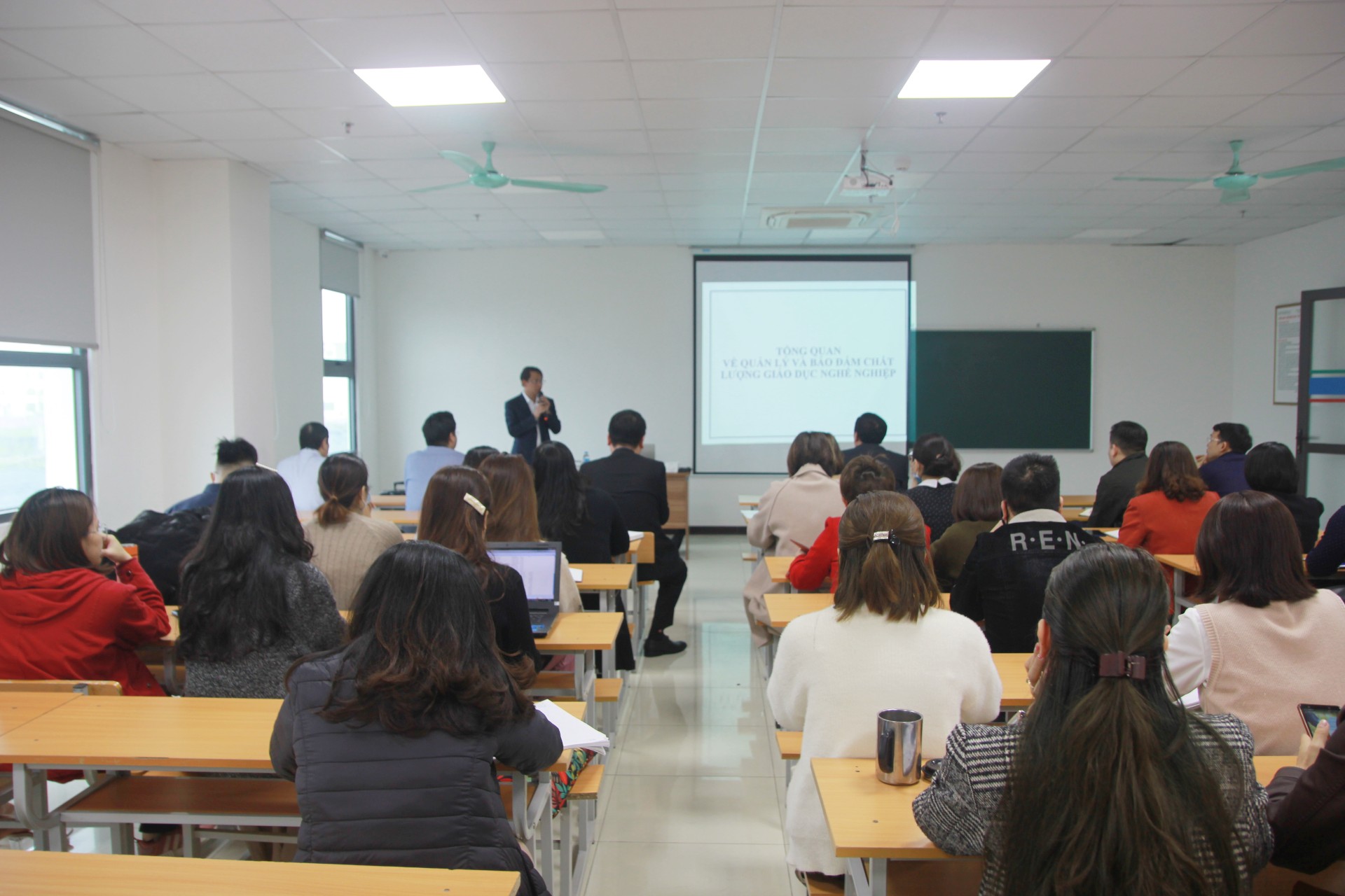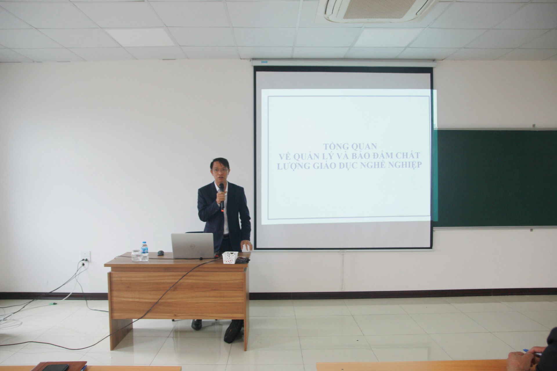 Ngay sau chương trình khai mạc, Chuyên gia của Trung tâm đã chủ trì buổi tập huấn với nội dung: Tổng quan về quản lý và bảo đảm chất lượng giáo dục nghề nghiệp.