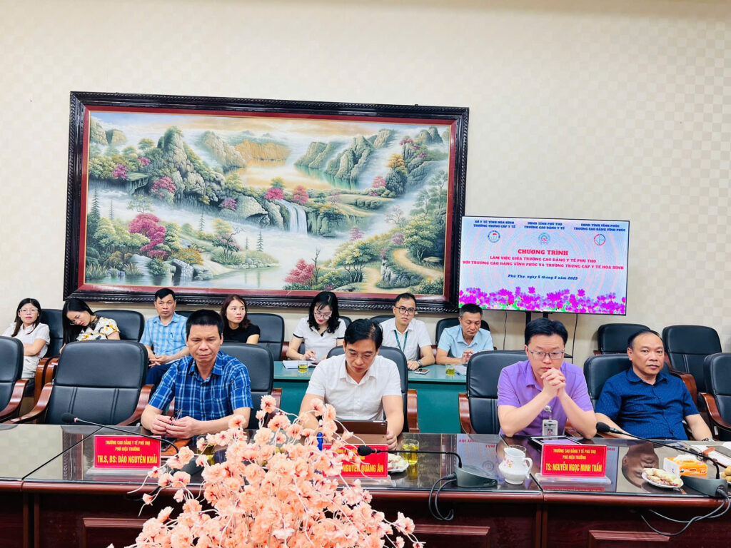 Sáng ngày 5/5/2025, Trường Cao đẳng Y tế Phú Thọ tổ chức tiếp đón và làm việc với trường Cao đẳng Vĩnh Phúc và Trường Trung cấp Y tế Hòa Bình tại phòng Trực tuyến nhà trường.