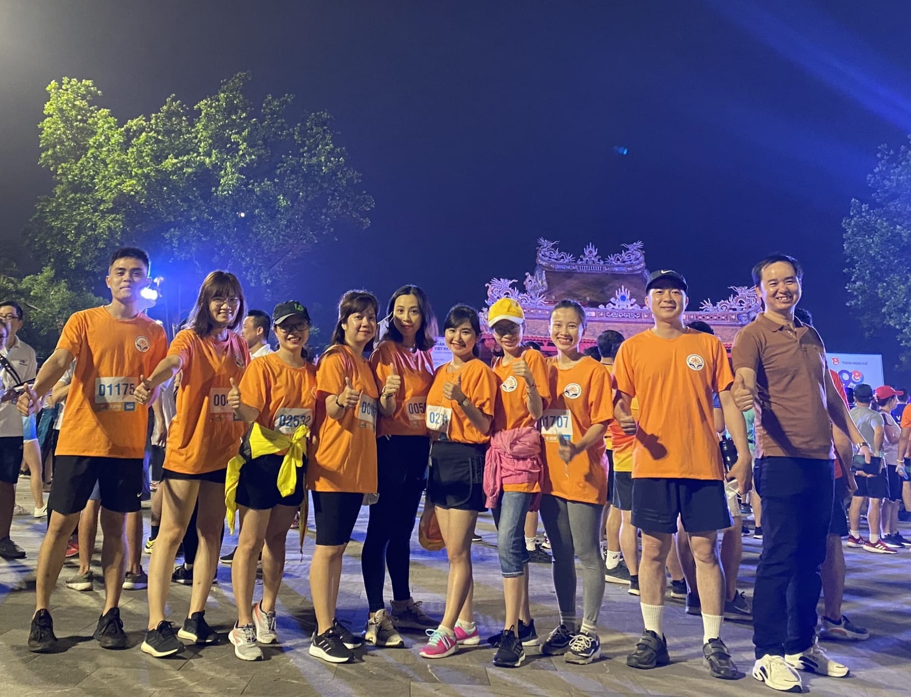 Toàn thể vận động viên Trường Cao đẳng giao thông Huế thể hiện quyết tâm chinh phục cử ly 5km